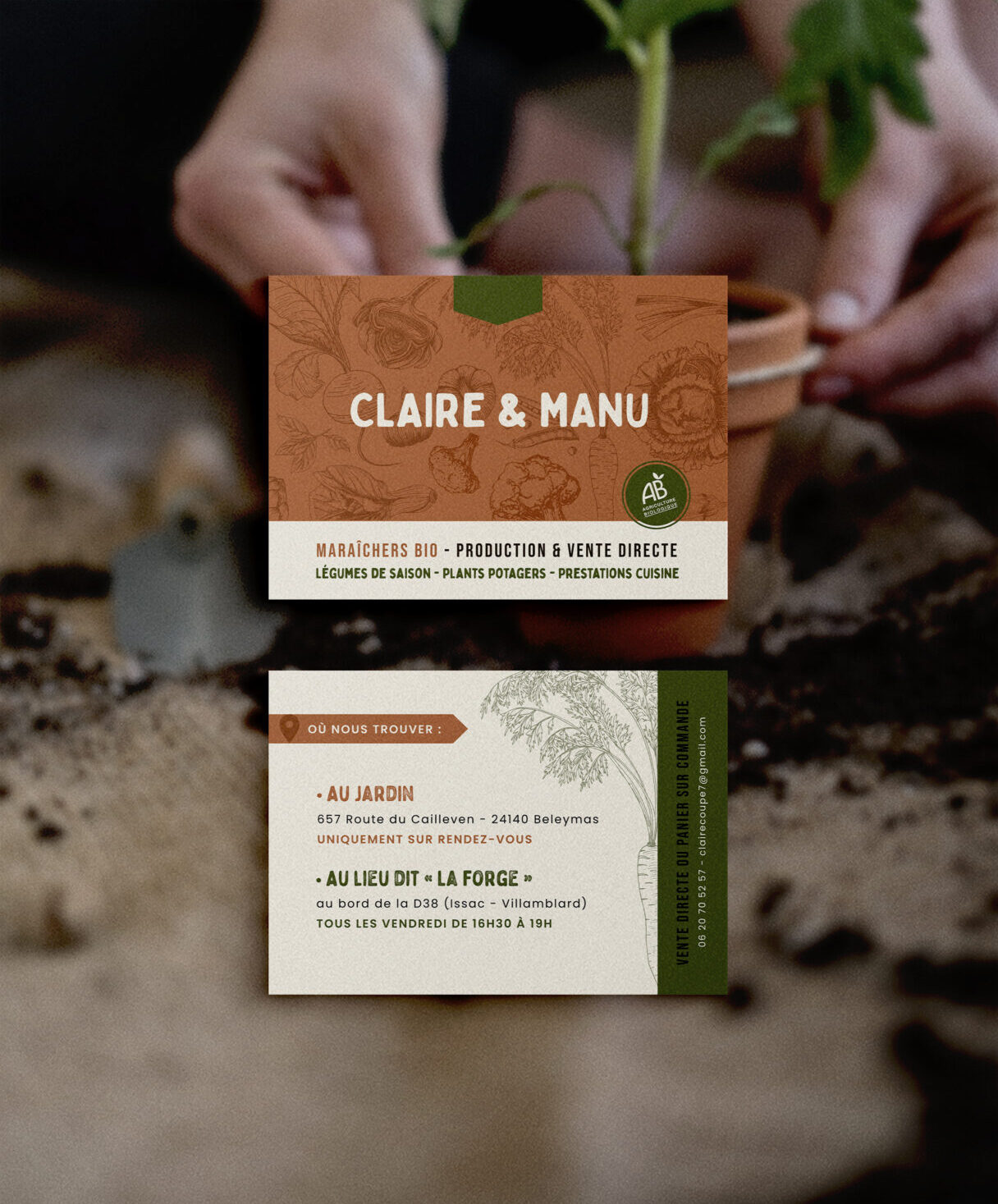 Claire et Manu forment un couple de maraîchers bio, installés en Dordogne. Leur activité se concentre sur la culture et la vente de divers plants et légumes en agriculture biologique. Ils commercialisent leurs productions via différentes plateformes.